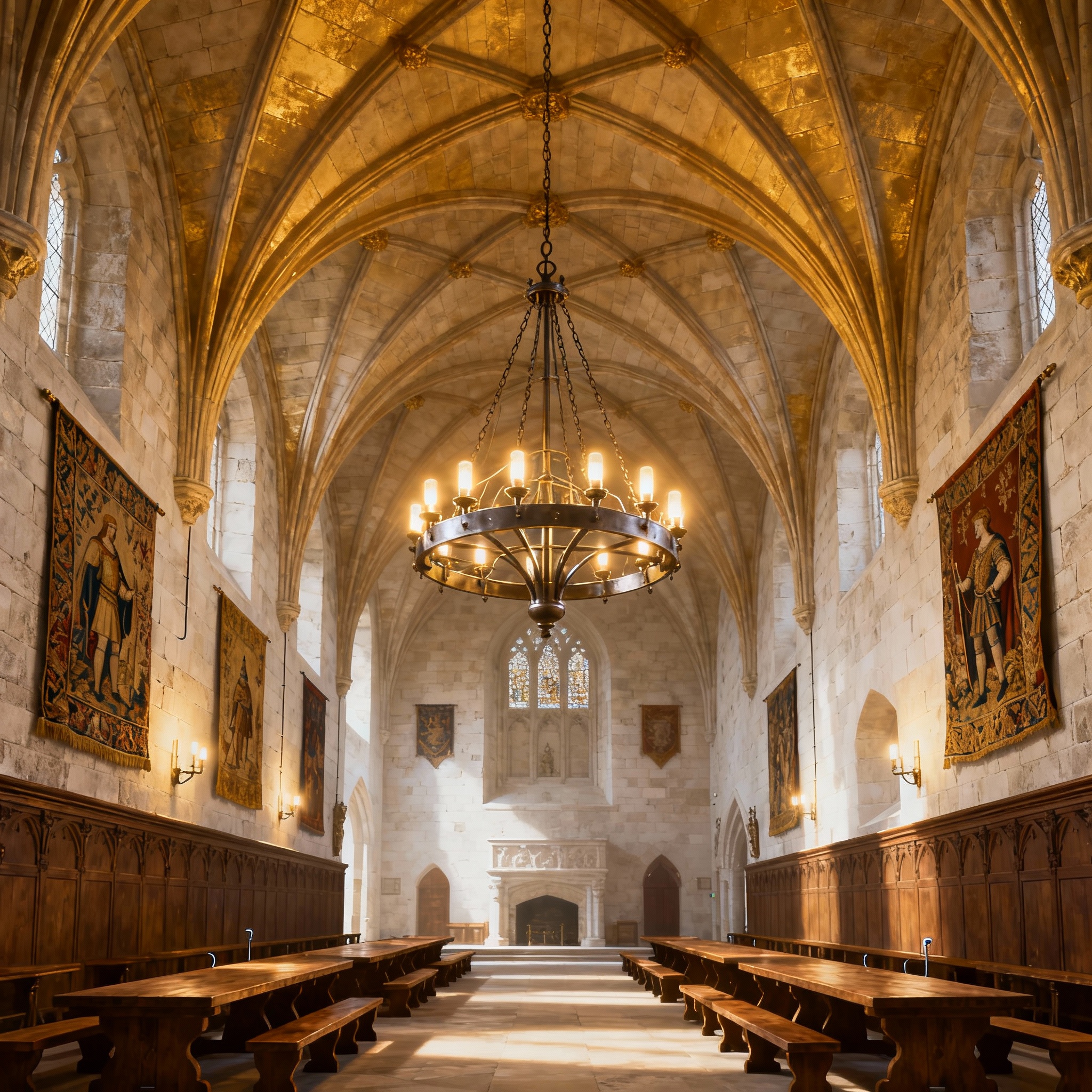 Для освещения замка до изобретения электричества наши предки использовали искусственные источники света, такие как свечи, масляные лампы, люстры, факелы, очаги и естественное освещение.